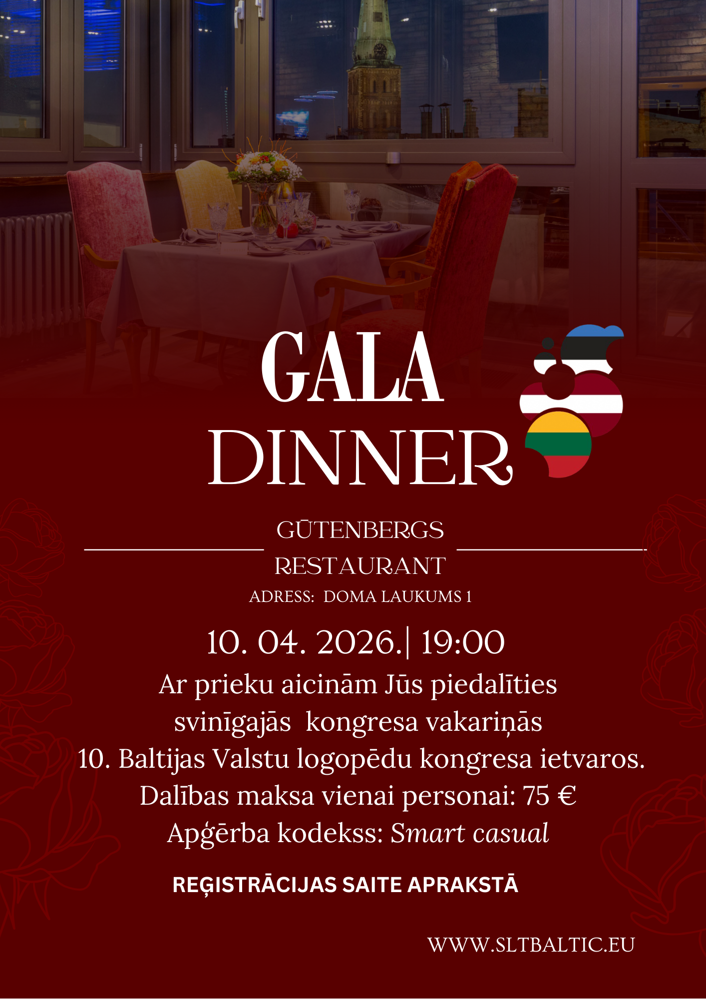 Ar prieku aicinām Jūs piedalīties kongresa GALA vakariņās, kas notiks 10. Baltijas valstu logopēdu kongresa ietvaros.